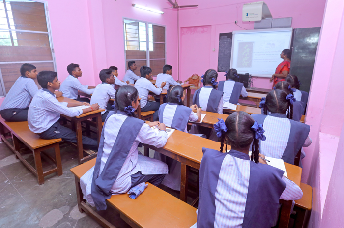 The campus is equipped with modern facilities that aids the Teaching-Learning Process to realise our dreams. Smart Class Provides the students a meaningful learning experience. The entire-campus is provided with clean-pure RO water facility. Students from 8th std is engaged in Typewriting Classes compulsorily as part of Vocational Education